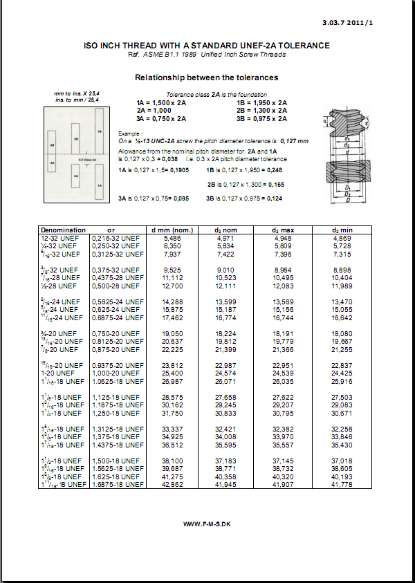 UNEF美制精細螺紋尺寸說明如下: