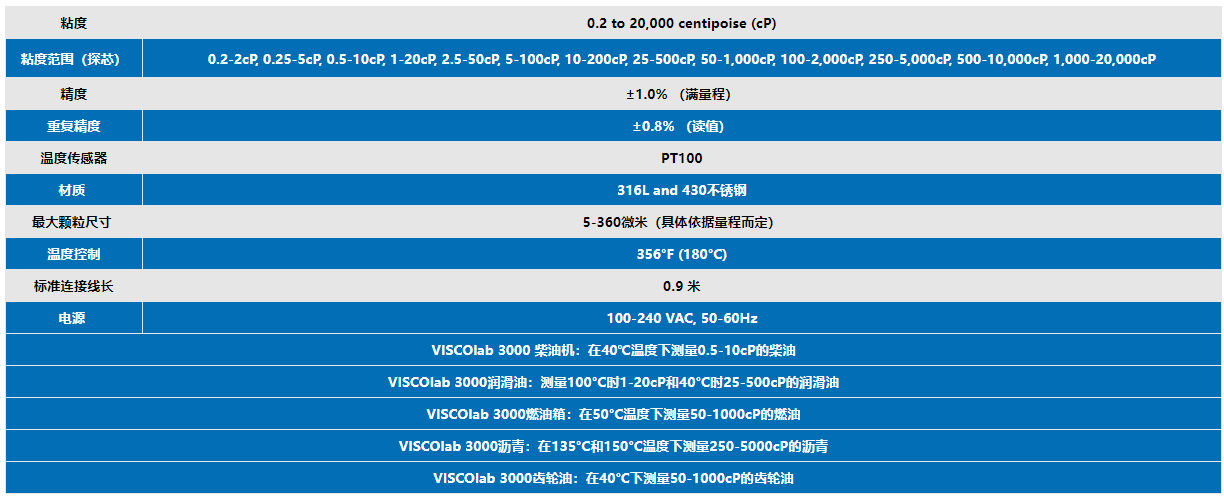 VISCOlab 3000粘度計(jì)規(guī)格參數(shù):