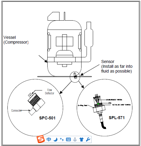 1,按照傳感器尺寸,在壓縮機上鉆孔并開孔,用來裝傳感器。