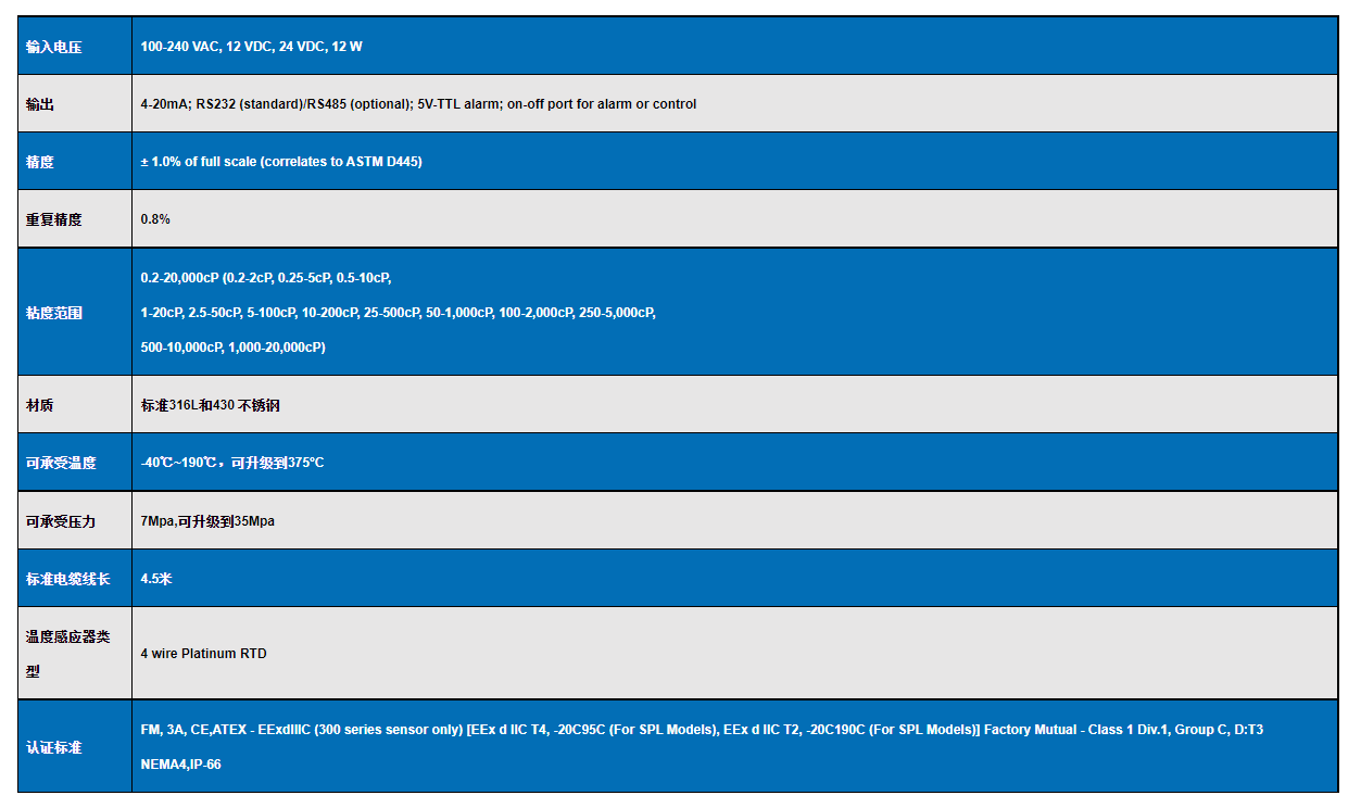 該粘度探頭檢測樣品量僅需1ml,重量約1kg,樣品可通過粘度探頭溫空套調(diào)節(jié),檢測時間十幾分鐘,這些都是防爆粘度計的典型特征,在實(shí)驗(yàn)室,大學(xué)和研究所得到廣泛應(yīng)用,主要測定特定流體樣品的粘度參數(shù),比如潤滑油研究領(lǐng)域,為潤滑油的特性和質(zhì)量等標(biāo)準(zhǔn)提供了基本的信息,通過測定某一型號潤滑油或其混合物的粘度,可以為客戶或設(shè)計者提供所需的泵的設(shè)計容量提供依據(jù)。